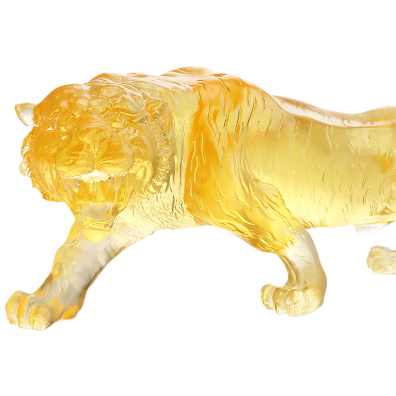 Eski ve gizemli bir malzeme olan renkli sır, kristal berraklığı ve renkli renk özelliklerine sahiptir. Bu süs seti, renkli sırın bu avantajlarını açıkça göstermektedir. Kaplan görkemlidir ve her kas çizgisi ayrıntılı olarak tasvir edilmiştir. Duruşu, krallara yakışır bir tavır sergileyerek, bir sonraki saniye içinde avının üzerine atlamaya hazırdır. Ejderhanın görüntüsü dolambaçlı olup, ejderha bıyıkları ve ejderha pulları gibi detaylar sanki gizemli atmosferle dolu bulutların üzerinde uçuyormuş gibi gerçekçidir.