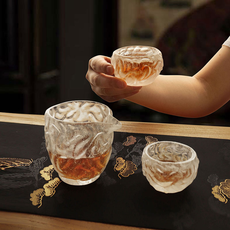 Spark Fireworks serisinden bu şeffaf çay takımları seti tam anlamıyla bir sanat eseri! Kristal berraklığında malzeme, havai fişeklerin açma anını donduruyor gibi görünüyor ve buzla yanan her desen, doğanın çizdiği benzersiz ve şiirsel bir desen gibi. Fuar bardağının ve küçük bardağın boyutu iyi tasarlanmış, sadece pratik değil, aynı zamanda masaüstüne eklenen bir dizi zarif heykel gibi. Koyu renkli ahşap tabana karşı daha asil ve zarif, sanki sessizce huzurlu ve güzel bir yaşam tarzını anlatıyormuş gibi. İster çay tadımı için ister dekorasyon olarak kullanılsın, insanlara hem vizyon hem de ruh açısından çifte keyif getirebilir. Gerçekten ustaca ve güzel.