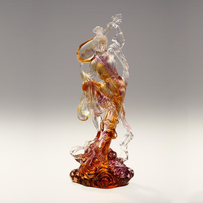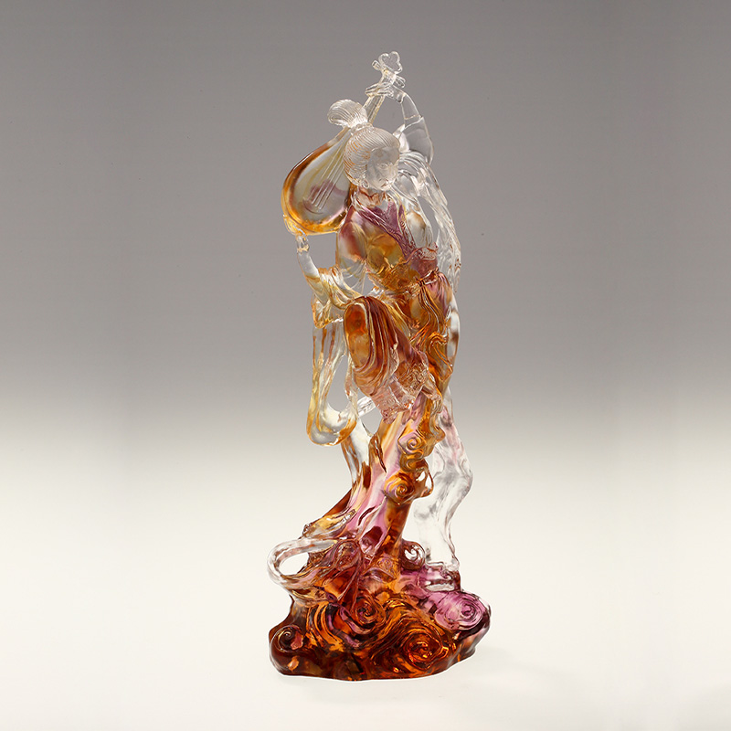 Bu zarif cam heykeldeki kadın figürü, sanki sonsuz bir güç ve zarafet barındırıyormuşçasına, uzun boylu ve düz, çeşitli tavırlara sahip. Her ayrıntı canlı bir şekilde tasvir edilmiştir. Giysilerinin hatları sanki rüzgarla hareket ediyormuş gibi pürüzsüz ve dinamik bir güzellik sergiliyor. Camın renk uyumu akıllıdır; zarif tonlar veya keskin kontrastlar olabilir; her ikisi de onun asaletini ve sıra dışılığını vurgulayabilir.
